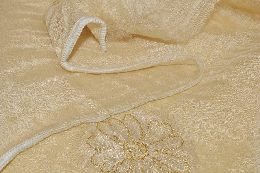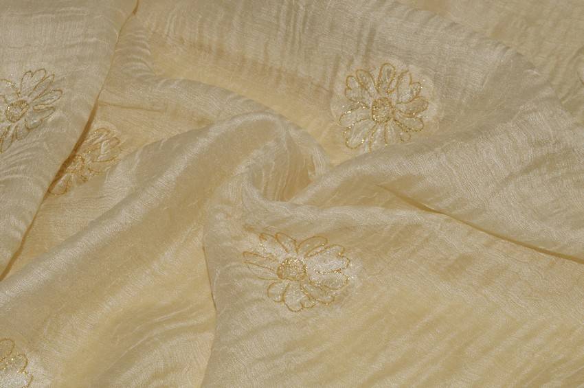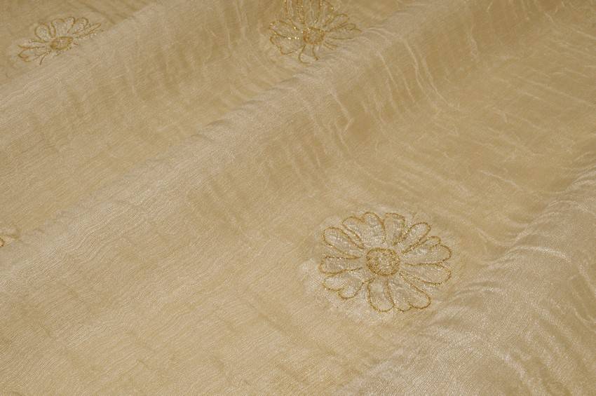 TESSUTO TENDA MISTO SETA CON RICAMO FIORE ORO