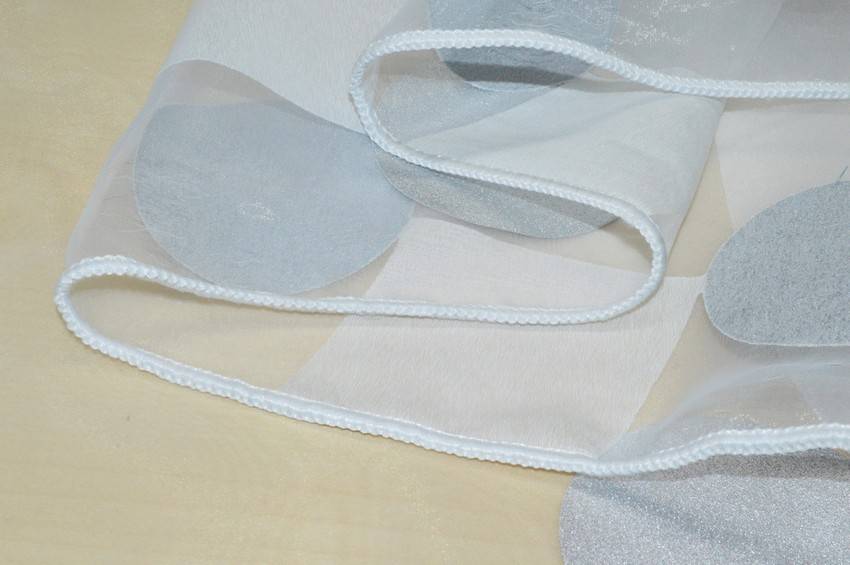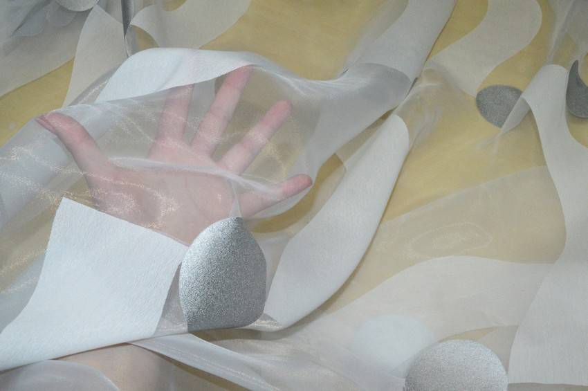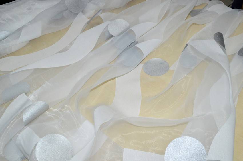 Vendita online tessuti per tende scampoli scampolo tenda organza con pois grigio argento - Tessuti & Stoffe