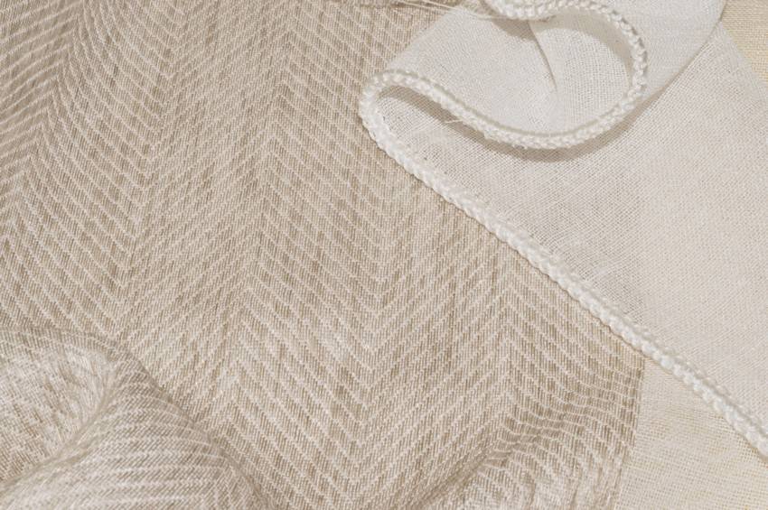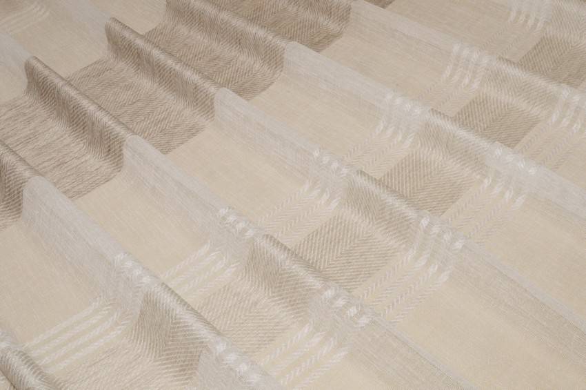 Le fasce orizzontali di diverse dimensioni si presentano con striature che mescolano il bianco ed il beige assieme. Vengono inoltre impreziosite dalla minuziosa lavorazione spinata per un aspetto pregiato, moderno ed elegante.