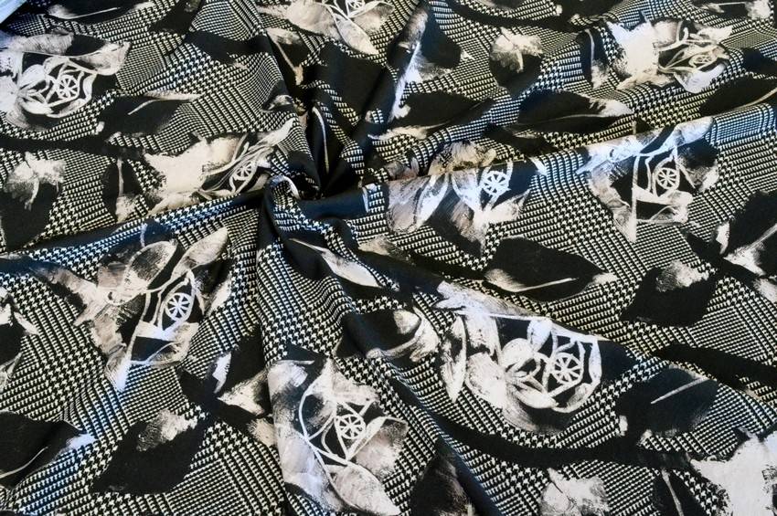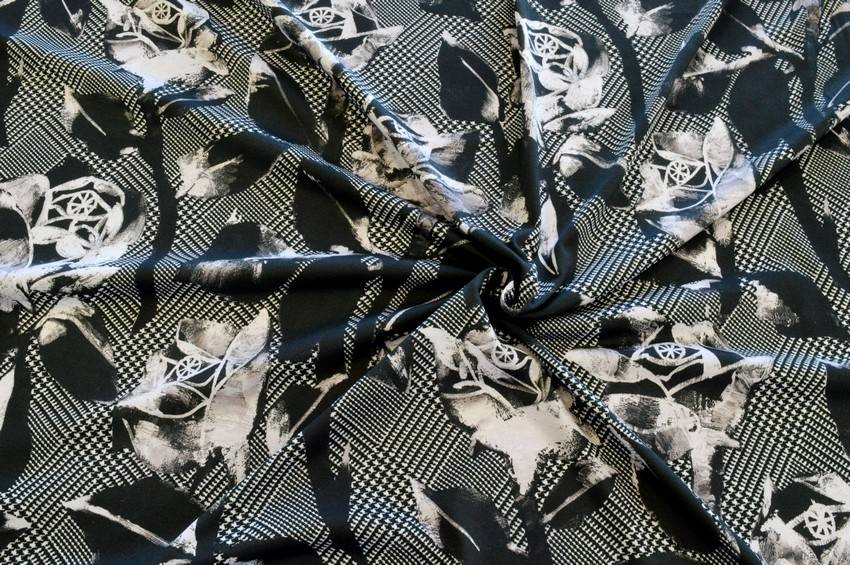 Tessuto in puro cotone di mano morbida e leggera. Il fondo unisce diversi disegni tra cui gli scacchi, il pied de poule e la stampa fiorata in un'armoniosa fantasia grigia e nera. Originale e unico è perfetto per creare capi d'abbigliamento pratico e sportivo come T-shirt ed abitini estivi.