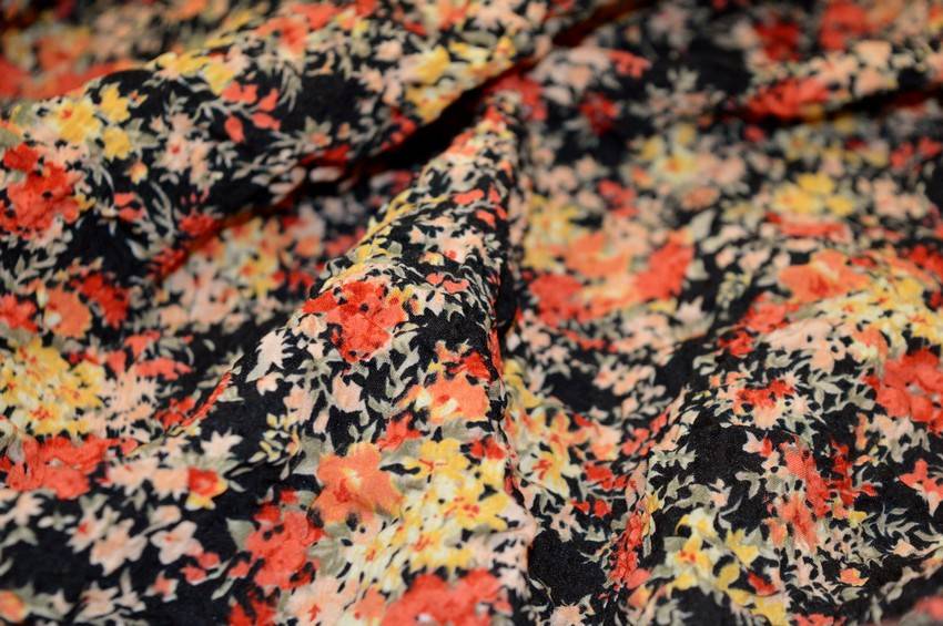 Tessuto di mano leggera abbellito dal fondo goffrato che conferisce alla stoffa un effetto lievemente tridimensionale. La base nera viene inoltre vivacizzata dalla graziosa e colorata fantasia floreale rosa e gialla. Può essere utilizzato per realizzare splendidi capi d'abbigliamento vario come camicette, top e vestitini primavera/estate.