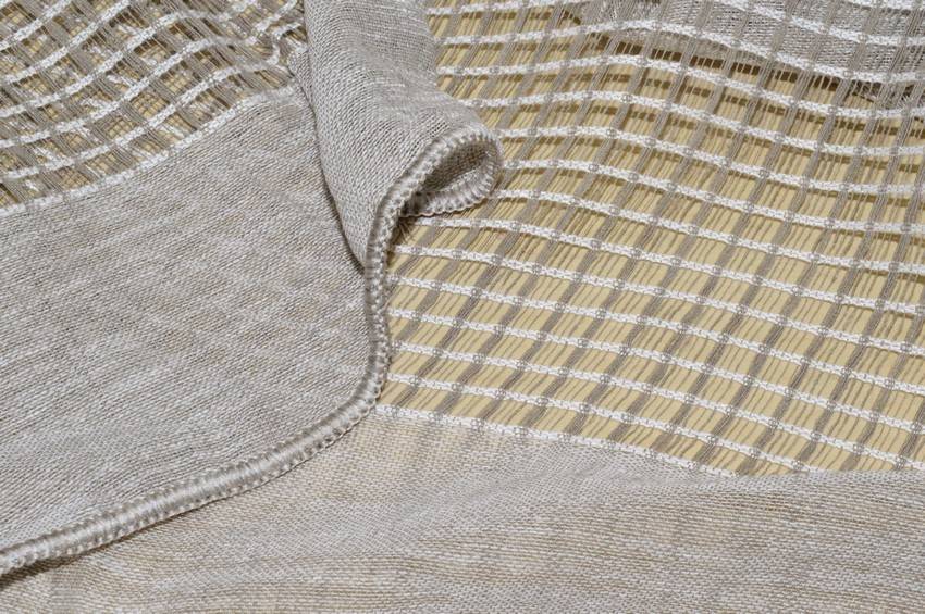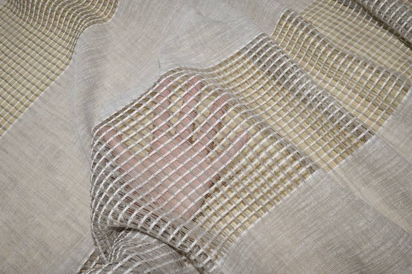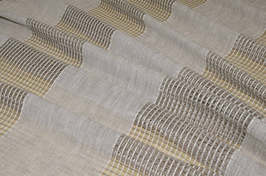 Tessuto per tendaggi della collezione Morena di Via Roma 60. La sua composizione sintetica conferisce maggiore robustezza alla stoffa, impedendole di scolorire al sole ed assumere stropicciature indesiderate. Il fondo grigio viene spezzato da 8 fasce orizzontali di 19 cm su tutta l'altezza.