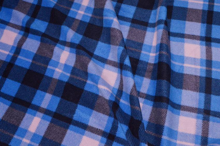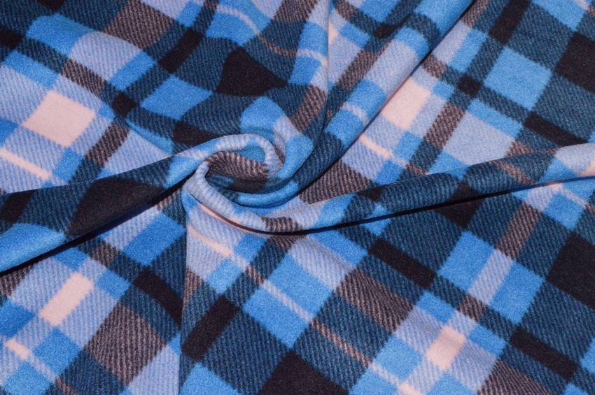 Splendido tessuto di pile a scacchi composti dalle differenti tonalità di azzurro e blu. La stoffa presenta inoltre un trattamento antipilling che impedisce la formazione dell'effetto pilling senza modificare la morbidezza del tessuto.