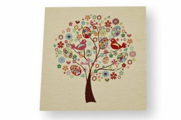 Tessuto fantasia con l'albero della vita su fondo chiaro in Gobelin piazzata cm 47x47. Articolo utilizzato per realizzare graziosi copricuscini, sottopiatti, tovagliette e lavori di cucito creativo vario.