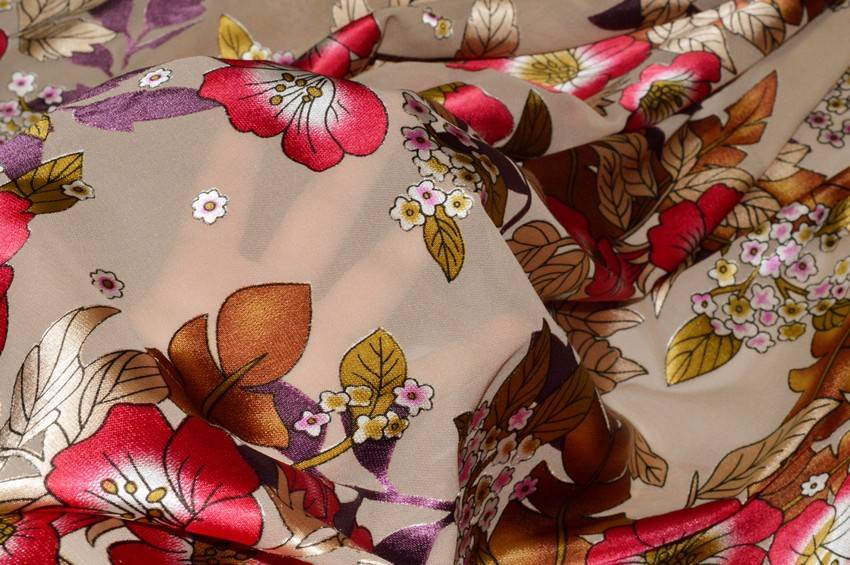 Vendita online tessuti abbigliamento georgette / chiffon dèvorè tessuto devoreh fantasia floreale fondo beige - Tessuti & Stoffe