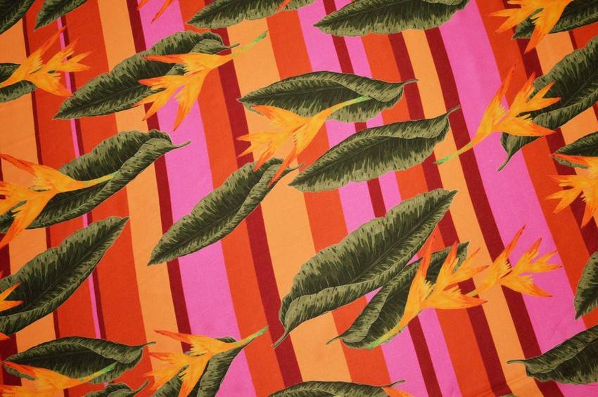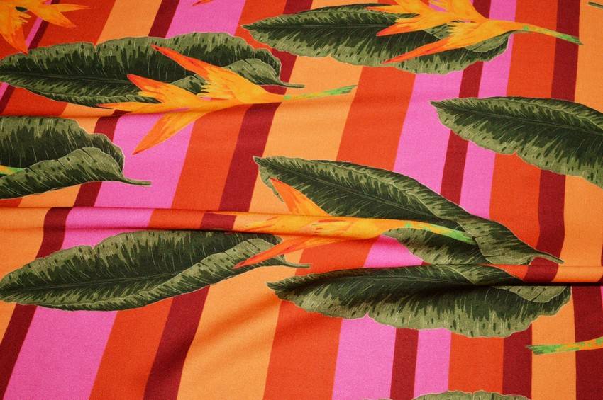 TESSUTO VISCOSA FANTASIA TROPICALE ARANCIO