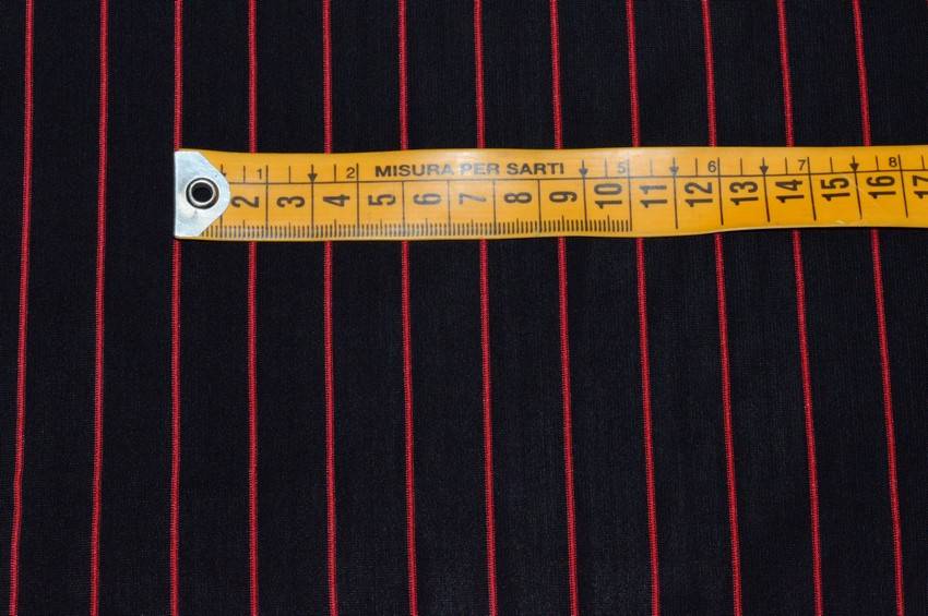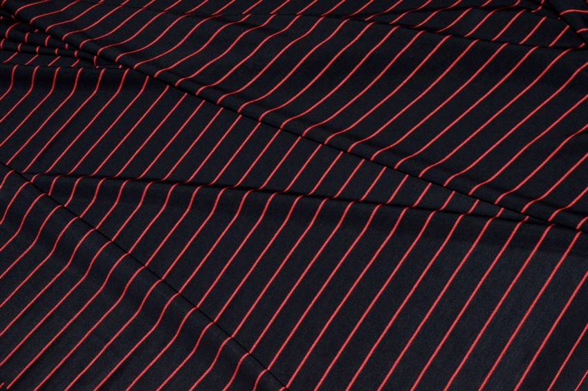 Vendita online tessuti abbigliamento viscosa tessuto maglina viscosa bi-elastica fondo nero riga rossa - Tessuti & Stoffe