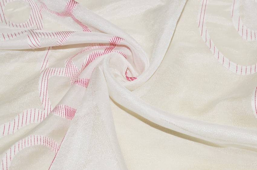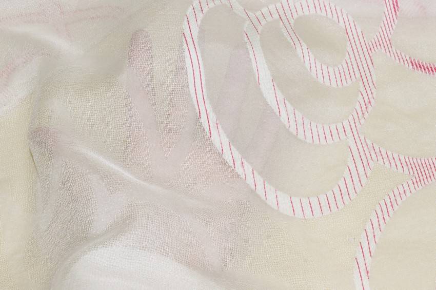 Bellissimo velo di fondo panna vivacizzato dalla particolare, ma raffinata fantasia fiorata color fucsia, perfetta per arredare con stile e giocosità il proprio ambiente. La stoffa una volta affissa si presenta molto cadente, leggera e filtrante alla luce, ottima per abbellire ed illuminare l'ambiente realizzando ogni tipologia di tenda arricciata.