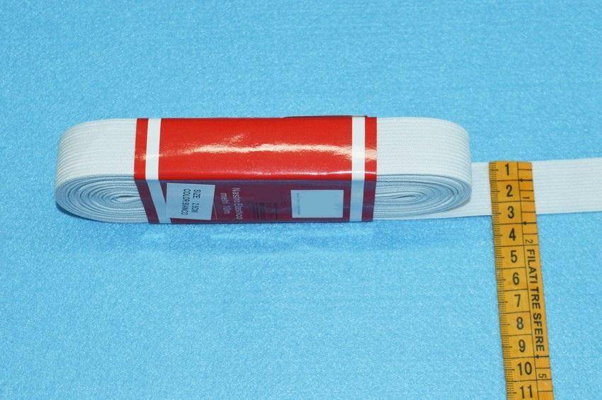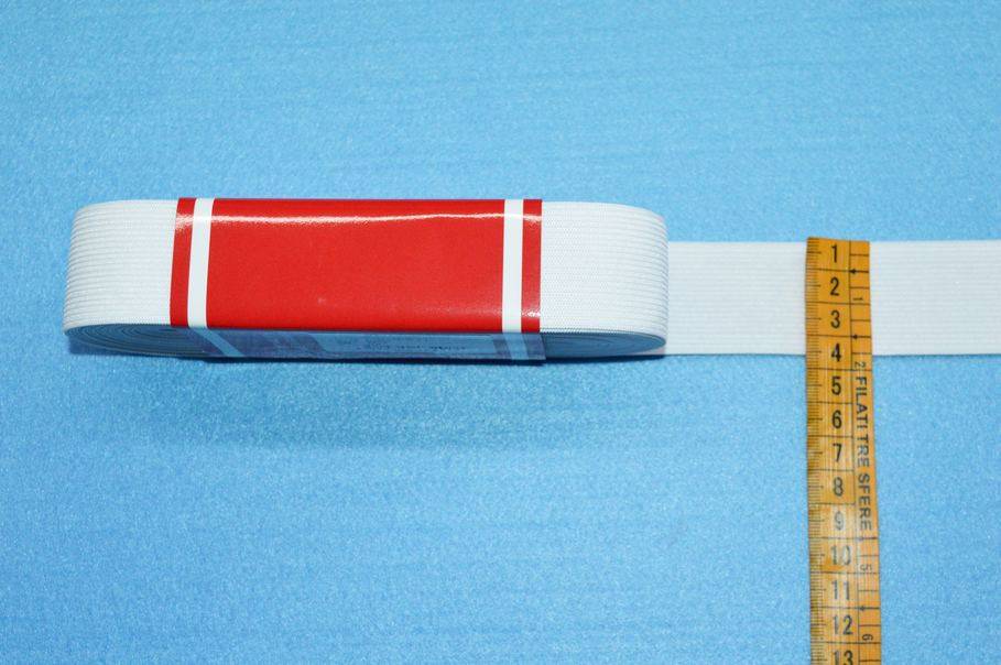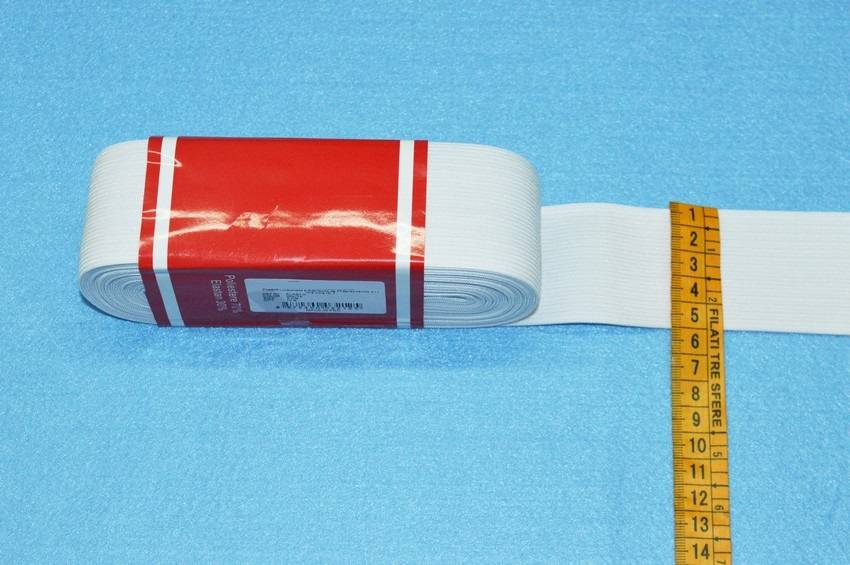 Pacchetti elastico bianco da 10 metri disponibile in 9 diverse altezze: 1.5 cm - 2 cm - 2.5 cm - 3 cm - 3.5 cm- 4 cm - 5 cm - 6 cm - 8 cm