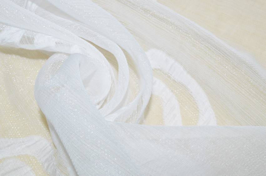 Tessuto in organza ideato per la realizzazione di splendidi tendaggi caratterizzato da un fondo in organza bianca moltro trasparente, leggero e filtrante alla luce. La base viene abbellita dalla moderna e minimale fantasia raffigurante nuvole stilizzate coprenti. Idonea per realizzare tende arricciate di ogni tipo.