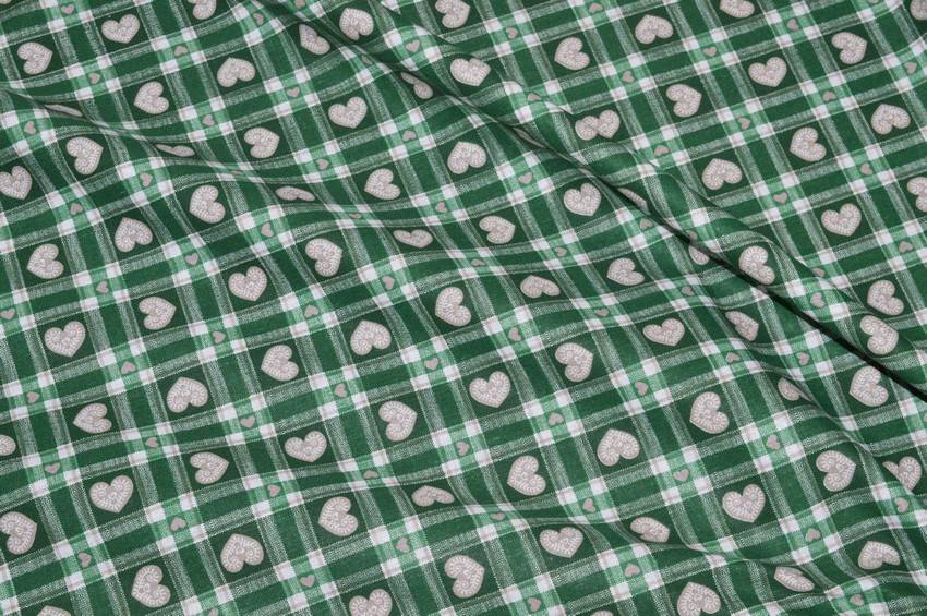 Tessuti realizzati interamente in puro cotone stampato coordinabili tra loro. Le due fantasie sono acquistabili anche separatamente. La prima presenta piccoli cuori di 1.5 cm e 4 cm circa su fondo verde, la seconda uno scozzese verde con quadri da 3x3.4 cm circa. Comodamente utilizzabili per lavori patchwork, piccoli lavori di arredo camerette, copricuscini e qualsiasi progetto fantasioso di cucito creativo come addobbi natalizi o oggettistica varia.
