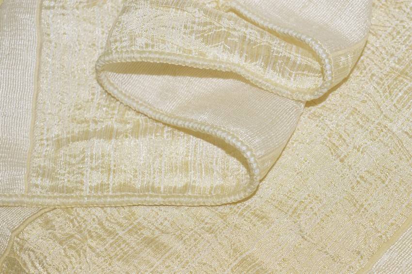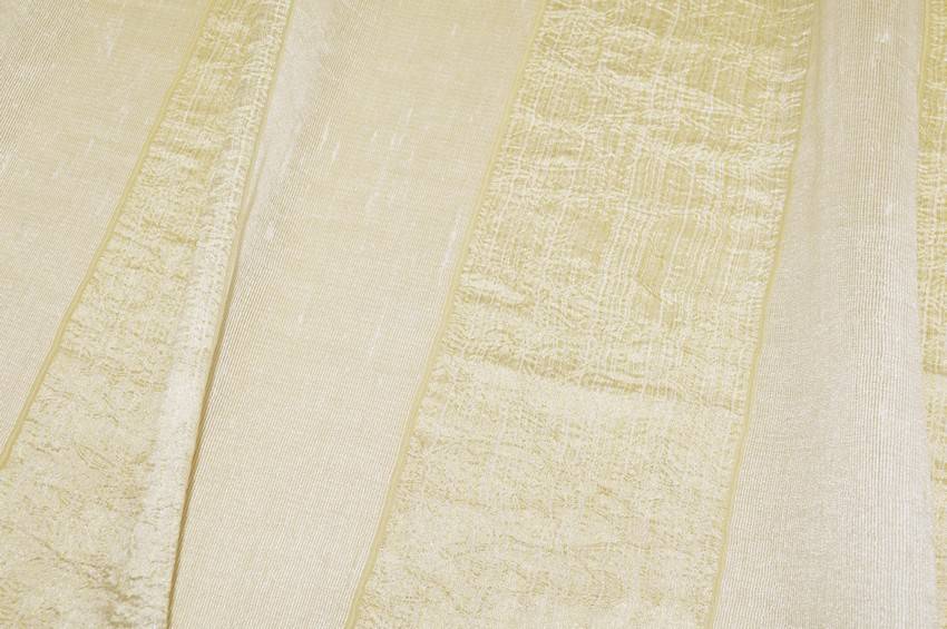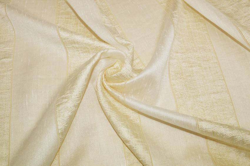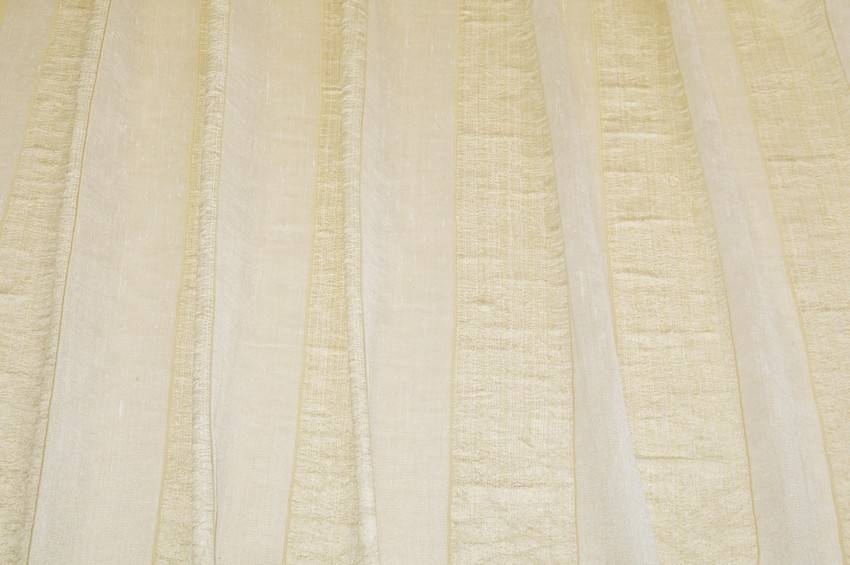 Tessuto per tende composto da fasce verticali beige alternate a luminose bande dorate per un aspetto classico, ma delicato e raffinato. Una volta affisso risulta leggero, cadente, morbido e filtrante alla luce. Utilizzato comodamente per la confezione di tende arricciate di ogni modello.