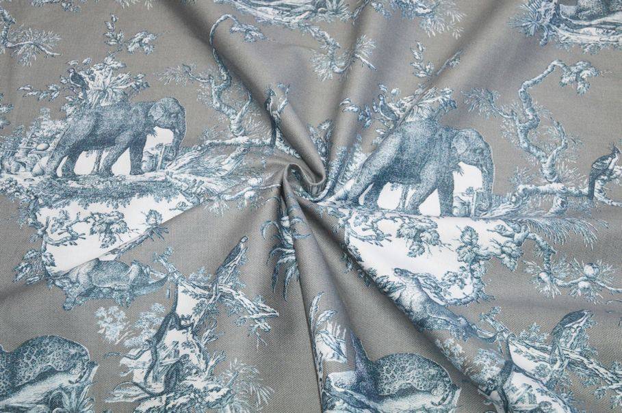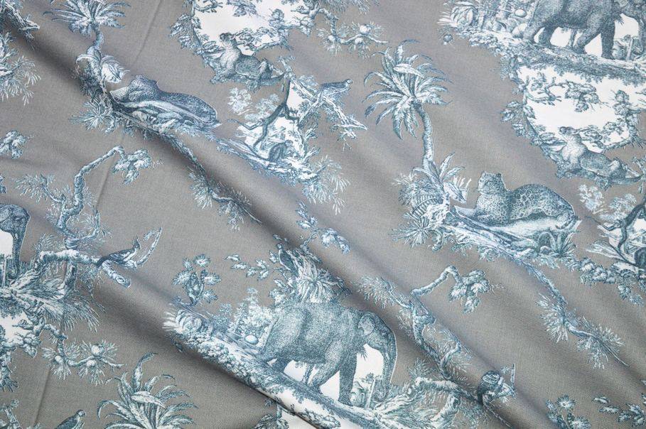 Vendita online cotoni toile de jouy tessuto panama puro cotone toile de jouy grigio disegno giungla - Tessuti & Stoffe