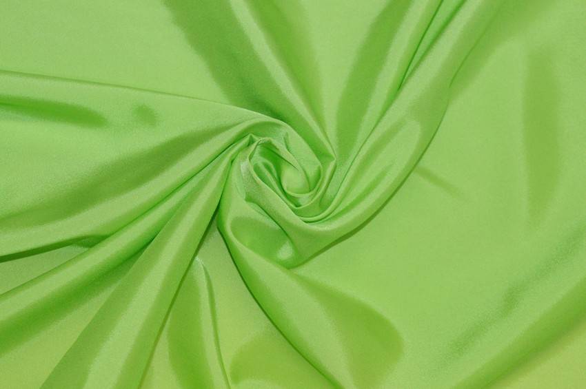 Vivace tessuto tinta unita verde acido acceso leggero e leggermente estensibile al tatto. Ideato per foderare gli interni di capi d'abbigliamento quali abiti, gonne e giacche.