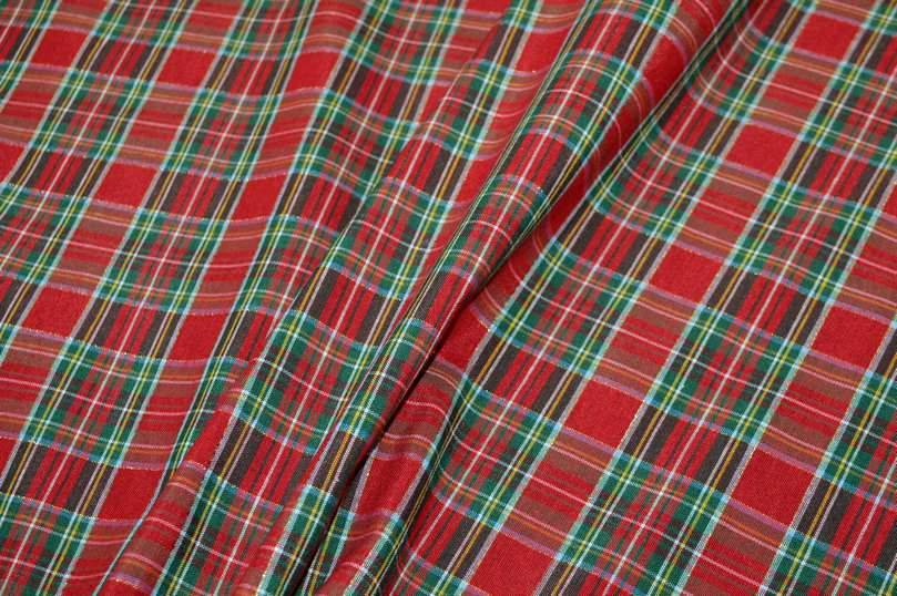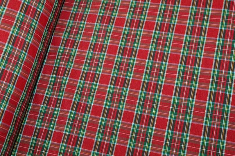 Vendita online ispirazioni tessuti natalizi tessuto arredo scozzese rosso filo lurex oro - Tessuti & Stoffe