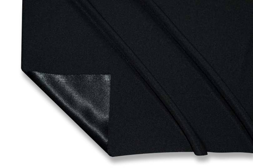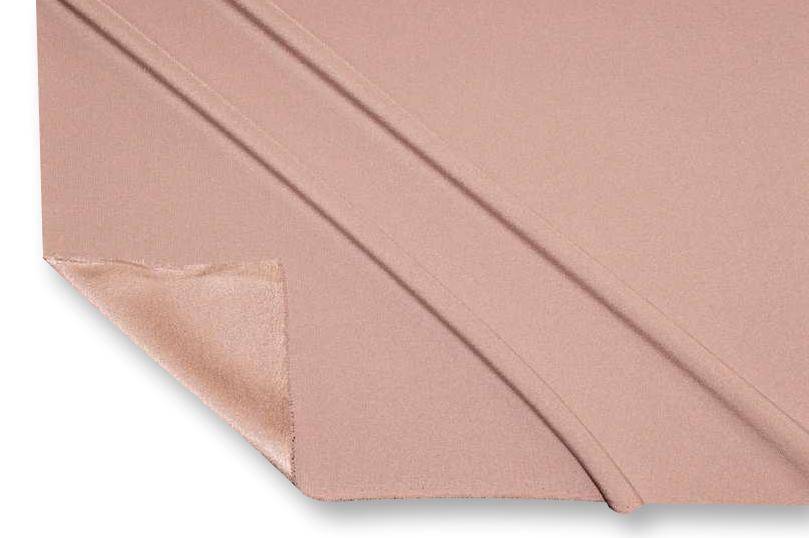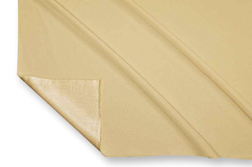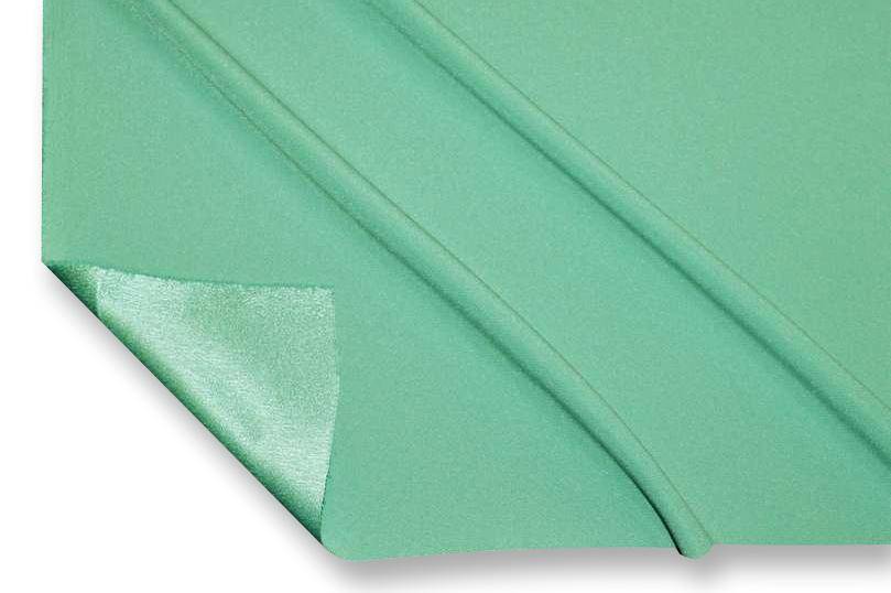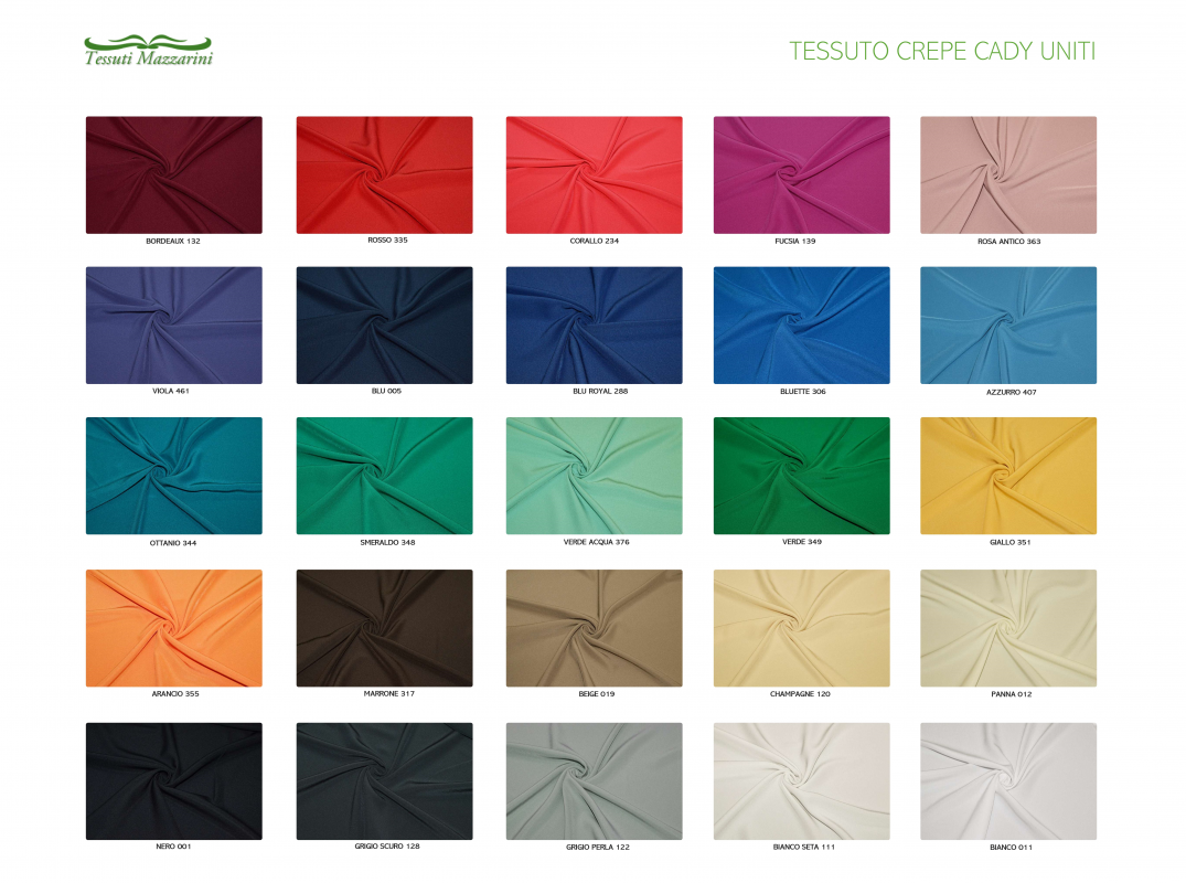 Tessuto Crepe Cady con rovescio satinato disponibile in numerose colorazioni tinta unita. Il prodotto si presenta con una mano morbida, fluente e granulosa unita ad un aspetto opaco dal dritto e lucido voltato al contrario.