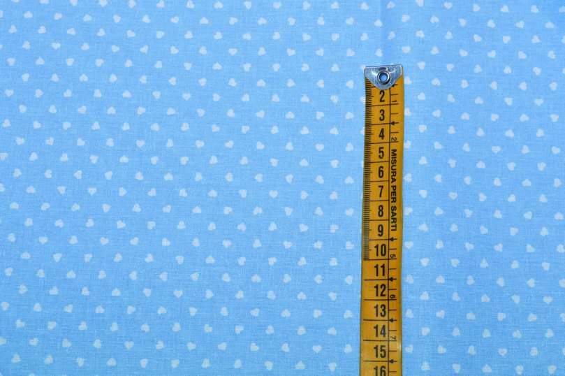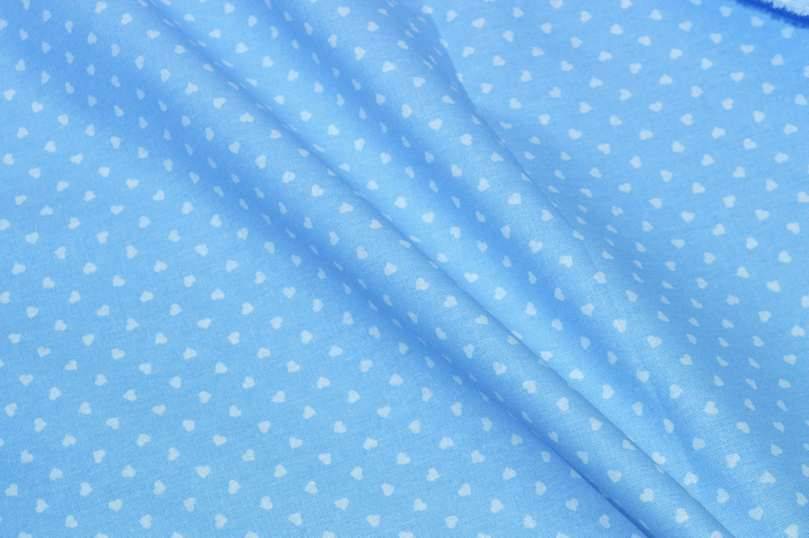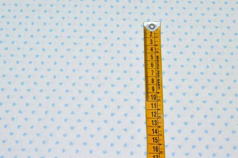 TESSUTO COTONE CUORICINI AZZURRO