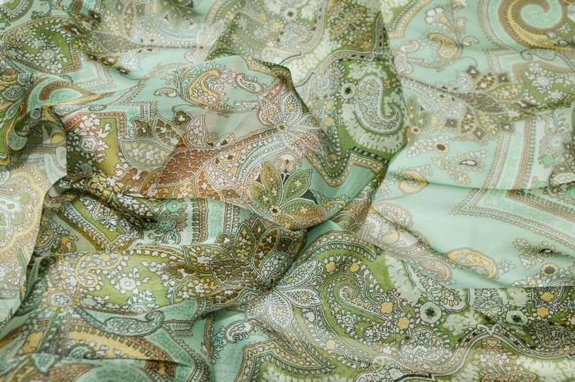 PANNELLO CHIFFON PURA SETA FOULARD FANTASIA VERDE ACQUA