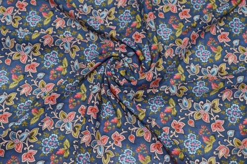 Il fondo viene decorato dalla colorata fantasia paisley la quale unisce differenti tonalità di arancio per un risultato armonioso, variopinto ed originale. Perfetto per confezionare capi d'abbigliamento primaverili ed estivi quali camicette, abitini, gonne, foulard e stole coprispalle.