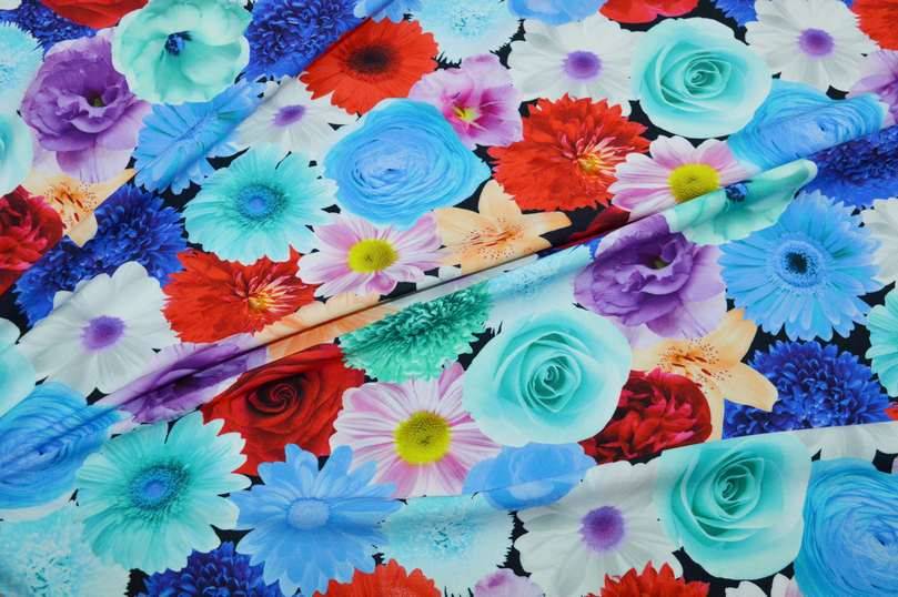 Vendita online tessuti abbigliamento viscosa tessuto fantasia viscosa floreale azzurra - Tessuti & Stoffe