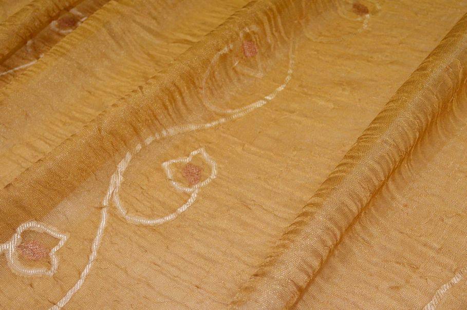 TESSUTO TENDA ORGANZA STROPICCIATA ORO CON RICAMO FILL COUPE