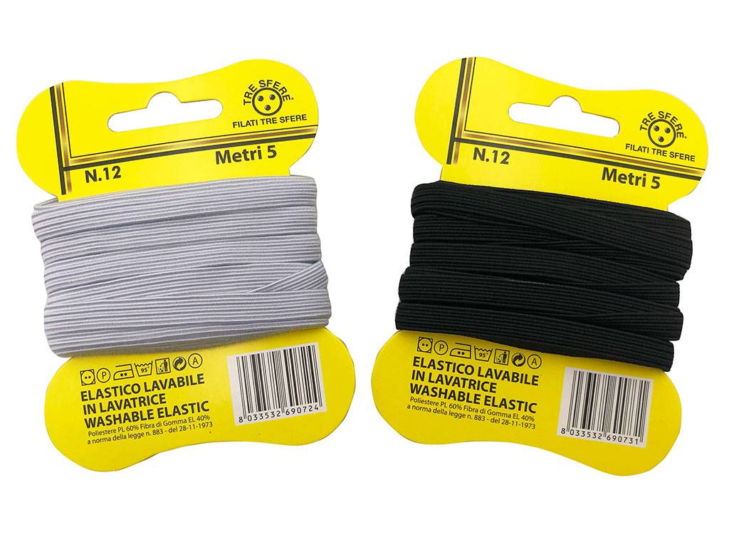 Pacchetti di elastico da mt 5 bianco e nero, altezza millimetri 8, selezionare x scegliere il colore
