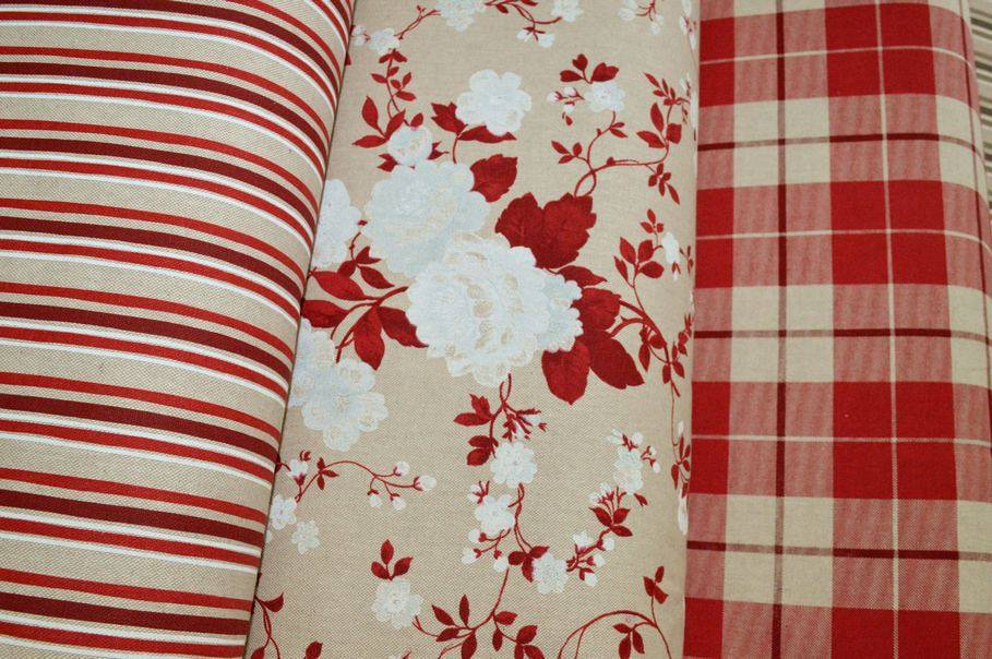 L'articolo offre una completezza ed una versatilità unica poiché viene proposto in tre splendide fantasie sui toni del rosso studiate per essere utilizzate separatamente o coordinate tra loro. Il primo dei due motivi geometrici viene composto da scacchi di 12x12 cm circa, il secondo da linee orizzontali. L'ultima fantasia offre invece una meravigliosa stampa floreale distribuita a campo pieno su tutta la lunghezza per un design sorprendente ed adattabile sia agli ambienti moderni che classici.