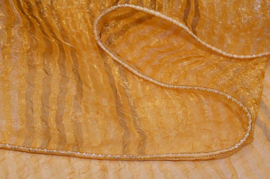 Vendita online tessuti per tende scampoli scampolo tenda organza stropicciata rigatino oro - Tessuti & Stoffe