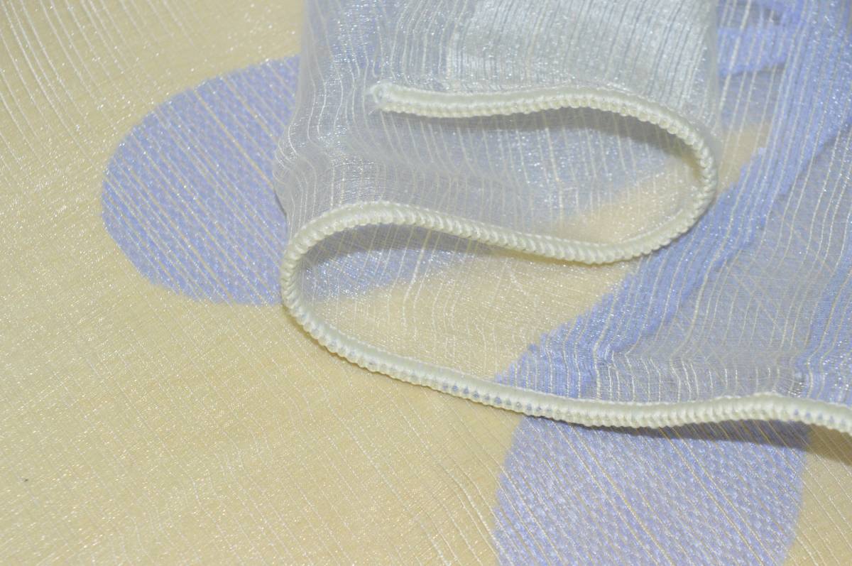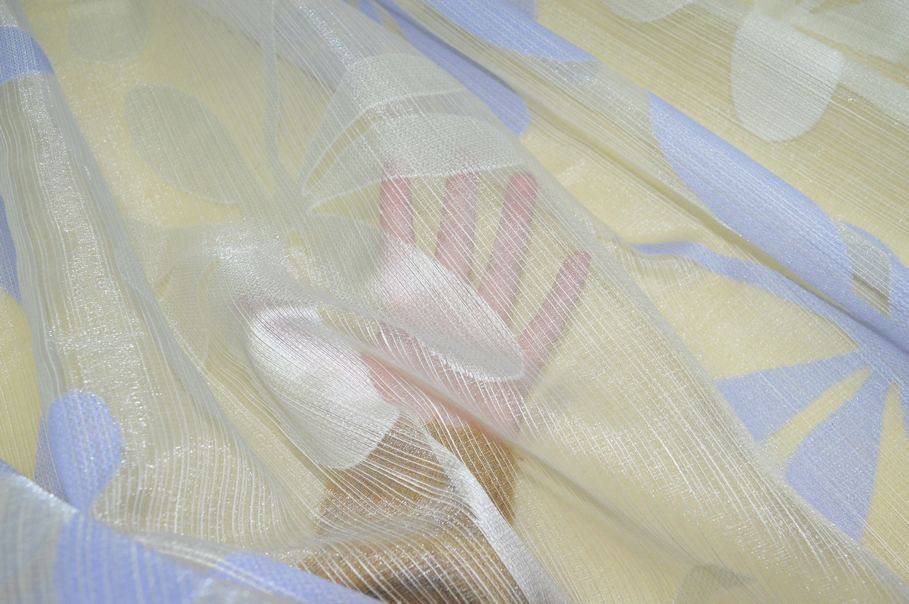Splendido tessuto in organza con fondo molto leggero e trasparente color naturale, ottimo per lasciar filtrare la luce ed illuminare l'ambiente. Grazie alla sua composizione la stoffa non assume sgradevoli pieghe e stropicciature indesiderate. Ad impreziosire il fondo vi sono le bellissime figure fiorate color naturale e lilla creando un vero e proprio elemento d'arredo di idniscussa bellezza. Idoneo per realizzare ogni modello di tende arricciate. Piombato in fondo.