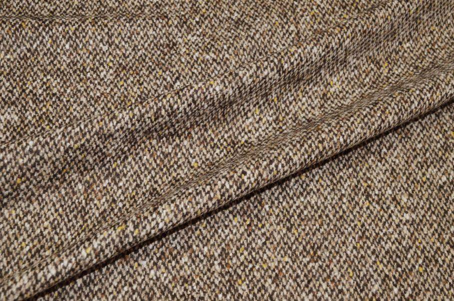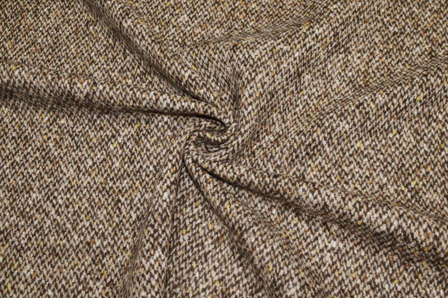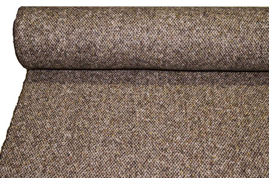 Il design sfoggia una bellissima lavorazione effetto tweed la quale unisce differenti tonalità di marrone e beige. Grazie alla sua grammatura pesante si adatta in modo ottimale alla realizzazione di capispalla invernali uomo/donna.