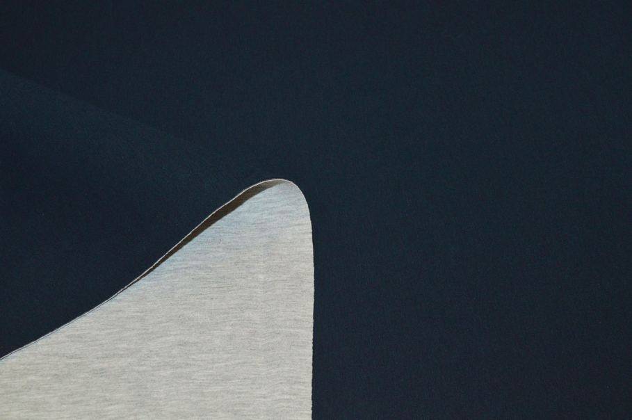 Tessuto tecnico di neoprene double in viscosa composto da un lato blu e da uno grigio con sottile gommapiuma centrale. Di struttura sostenuta è un prodotto idoneo per realizzare giubbini ed abbigliamento sportivo. Spessore 1,5 mm (Articolo non idrorepellente).
