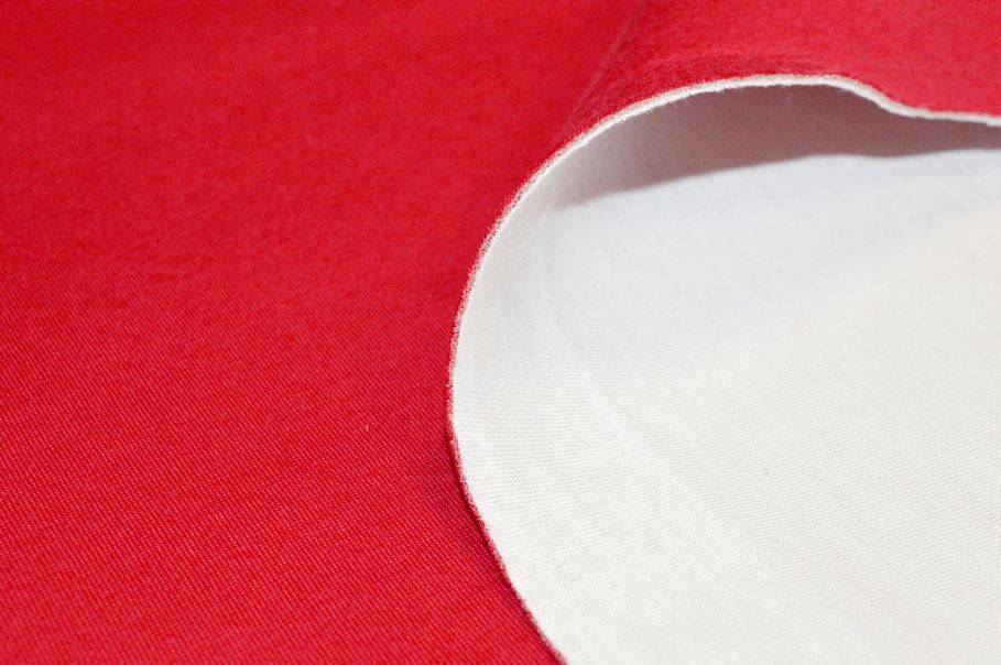 Tessuto tecnico di neoprene double in viscosa composto da un lato rosso e da uno bianco con sottile gommapiuma centrale. Di struttura sostenuta è un prodotto idoneo per realizzare giubbini ed abbigliamento sportivo. Spessore 1,5 mm (Articolo non idrorepellente).
