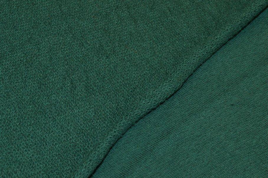 Tessuto felpa di puro cotone color verde bottiglia con dritto liscio e rovescio NON garzato. Idonea per la confezione di capi d'abbigliamento pratici, casual e/o sportivi quali tute, pantaloni e felpe anche con cappuccio.