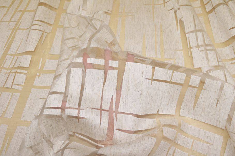Via roma 60 presenta un nuovissimo design moderno della sua collezione LOVELY STRATCH nella variante colore 0101 Naturale, caratterizzato dalla lavorazione in devoreh. Il fondo presenta un motivo effetto mosaico coprente color naturale impreziosito da sottili striature irregolari beige che creano un delicato ed armonioso contrasto con la base. A completarne lo stile troviamo segmenti trasparenti che attraversano il tessuto, tipici dlle stoffe in devoreh.