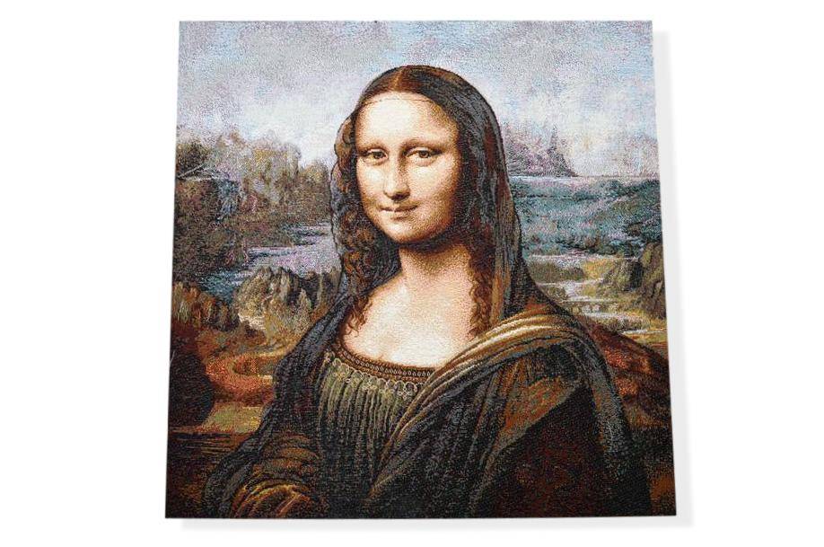 Tessuto con illustrazione raffigurante l'inconfondibile e rinomata Monnalisa Gobelin cm 47x47. Articolo utilizzato per realizzare graziosi copricuscini, sottopiatti, tovagliette e lavori di cucito creativo vario.