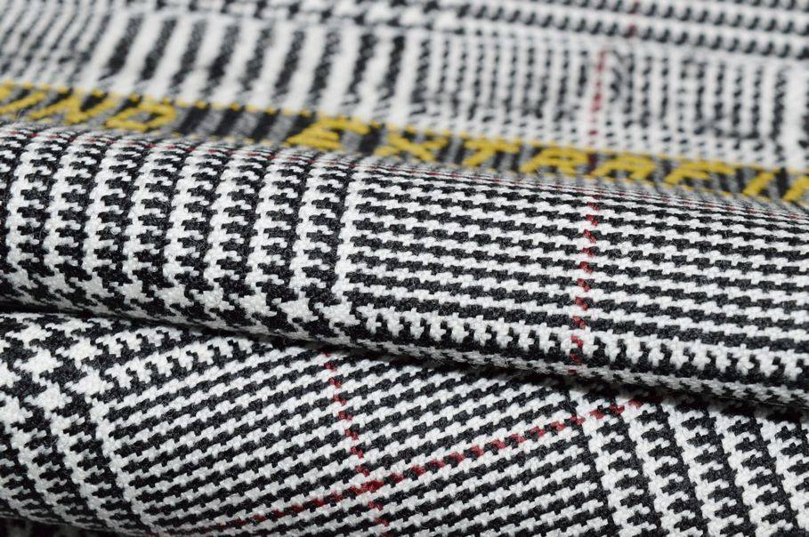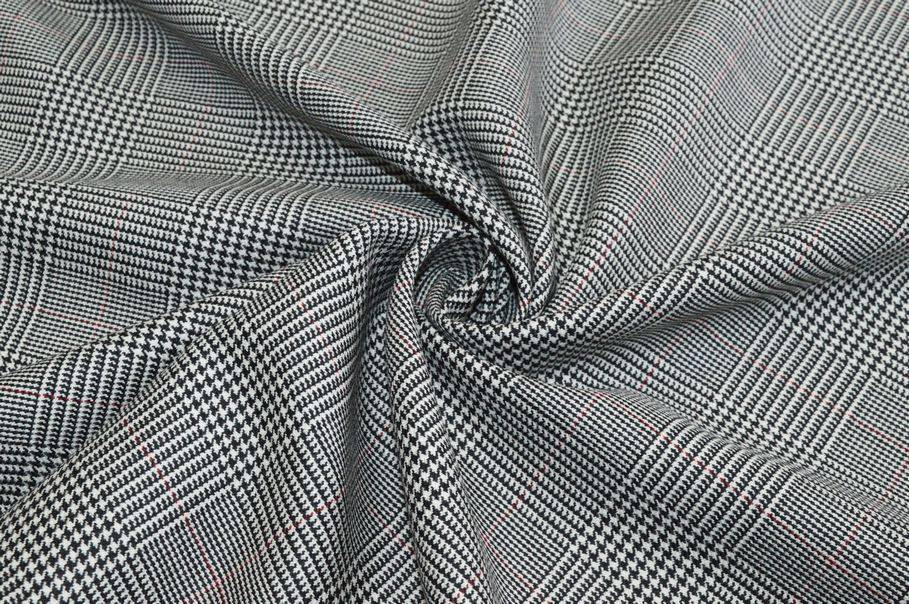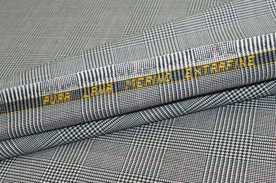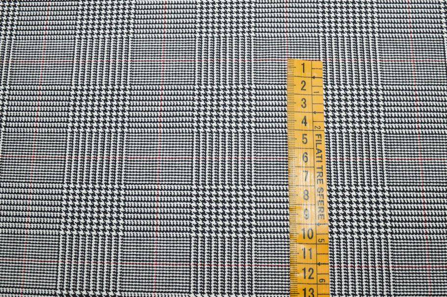TESSUTO PRINCIPE DI GALLES PURA LANA MERINO RIGA ROSSA