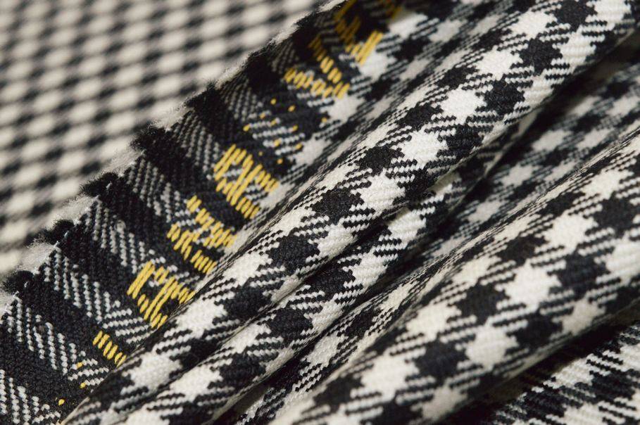 La stoffa offre inoltre un bellissimo design minimale ed elegante composto da una minuta scacchiera bianca e nera con quadretti di 3x3 mm.