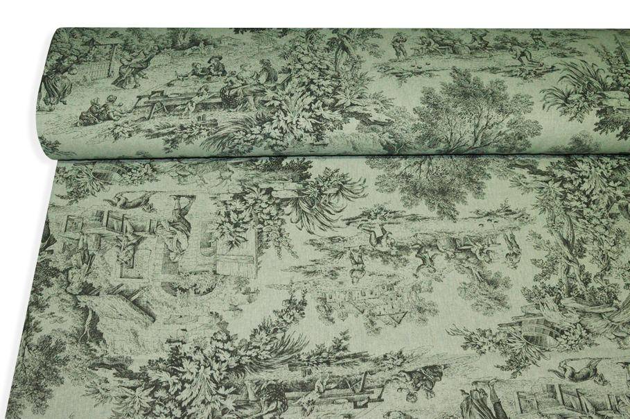 Vendita online cotoni toile de jouy tessuto panama puro cotone toile de jouy fondo salvia - Tessuti & Stoffe