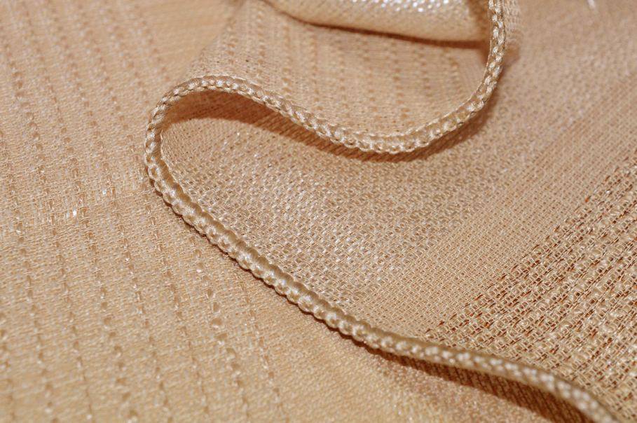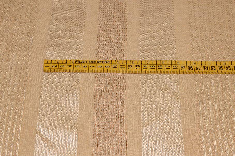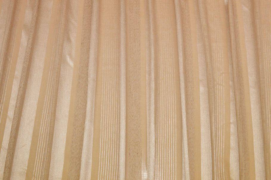 Tessuto idoneo per la realizzazione di tende arricciate amato per la sua mano leggera e cadente, perfetta per creare onde sinuose e morbide. Nella sua variante beige risulta essere un articolo di design molto raffinato ed elegante, arricchito dalle fasce verticali dorate che aggiungono un bellissimo scintillio alla stoffa.