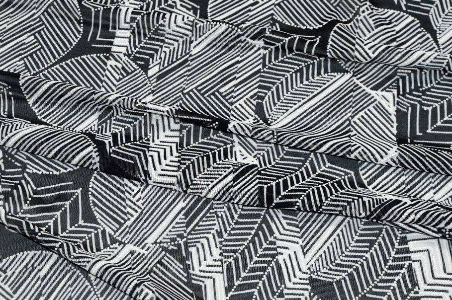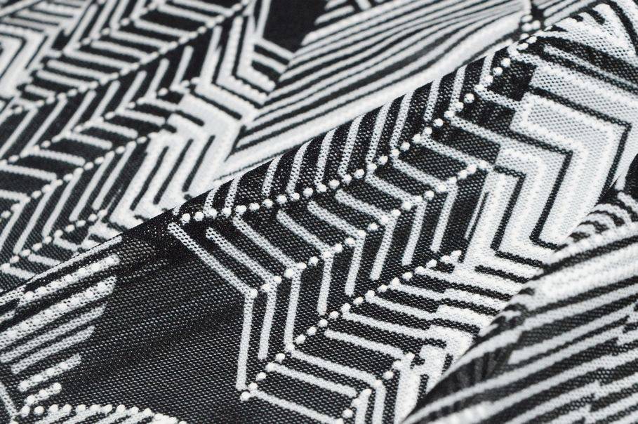 Vendita online tessuti abbigliamento poliestere scampolo tulle stretch fantasia bianca nera - Tessuti & Stoffe