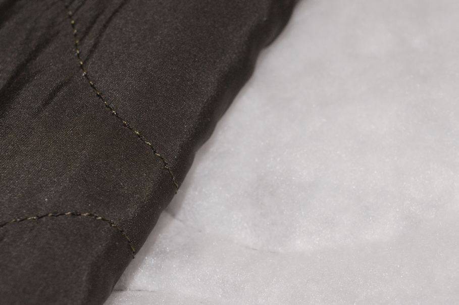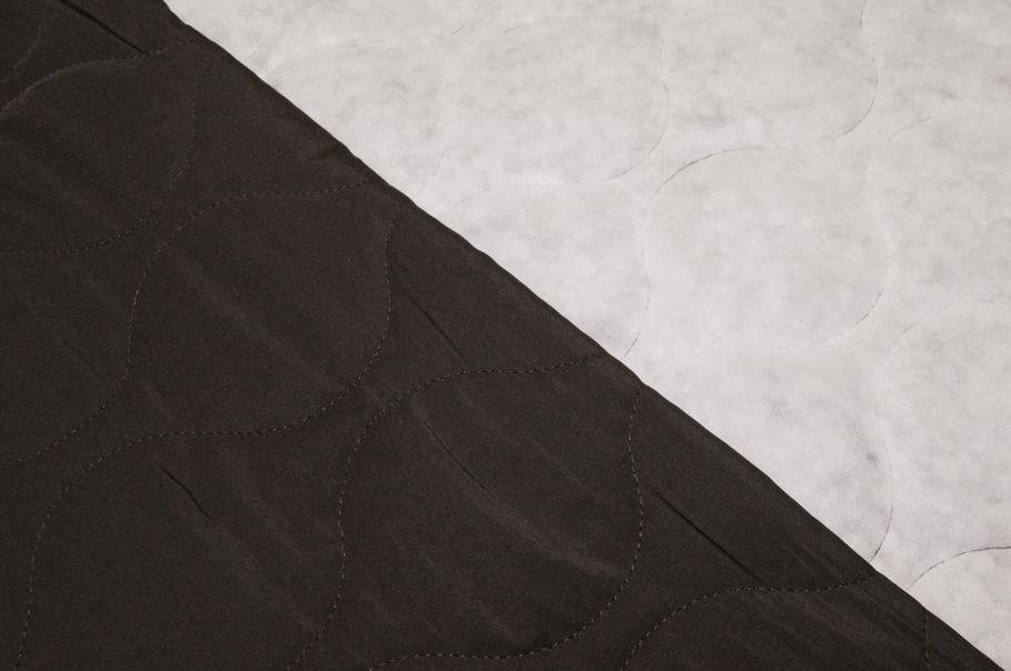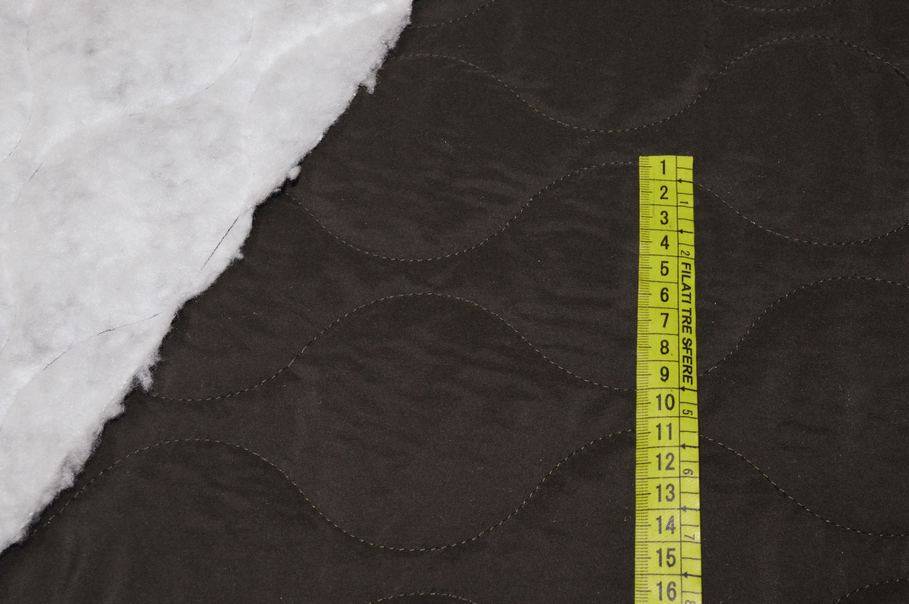 Tessuto trapuntato indicato per capi d'abbigliamento autunno/inverno e di mezza stagione poiché la sua struttura viene studiata appositamente per proteggersi dalle temperature più rigide. Questa tipologia di tessuto viene creata dall'unione di più livelli di stoffa. In questo caso dal dritto si trova un tessuto tinta unita marrone non lucido con una bellissima trapuntatura a vista che ricrea un motivo geometrico circolare. Dal rovescio risulta invece sfoderato dove è possibile vedere la morbida e calda imbottitura. Un'altra caratteristica che lo distingue dagli altri tessuti trapuntati è proprio l'aspetto dell'ovatta che crea un soffice effetto pelo d'agnellino.