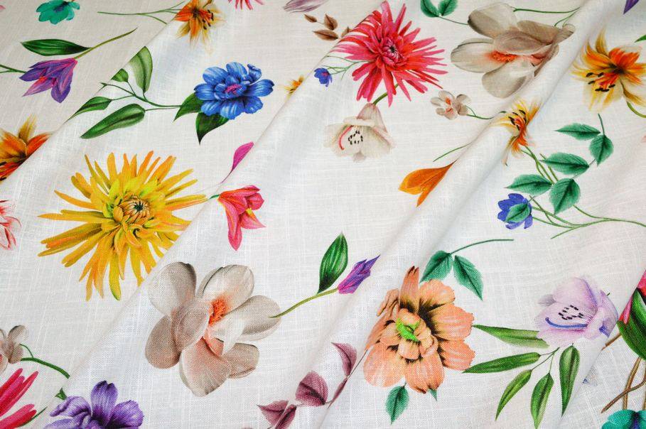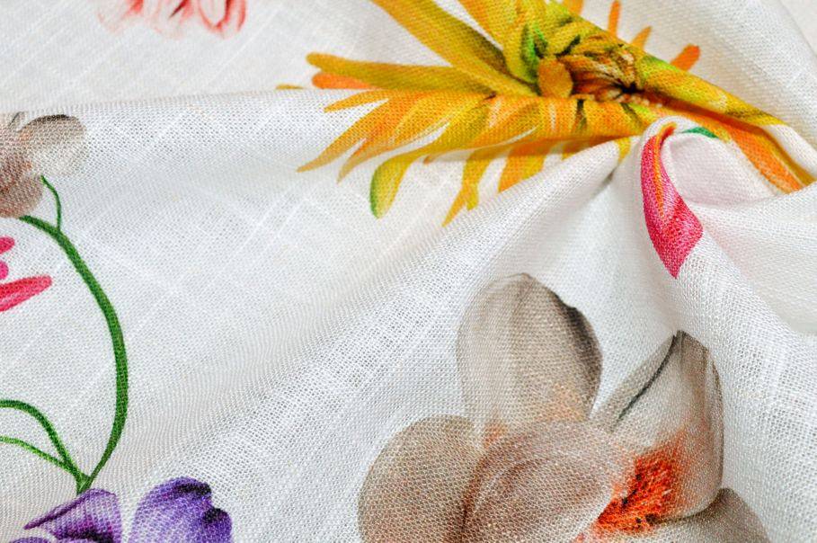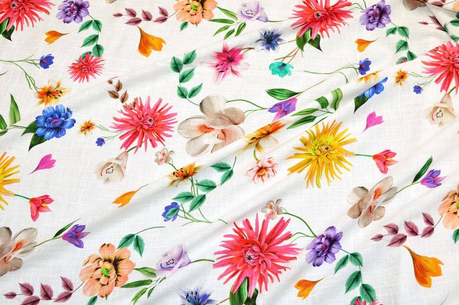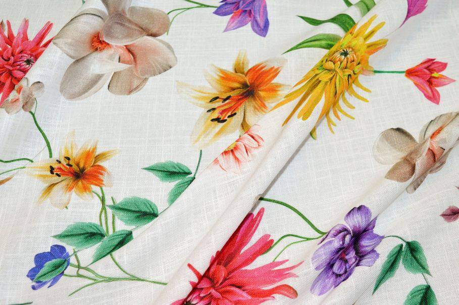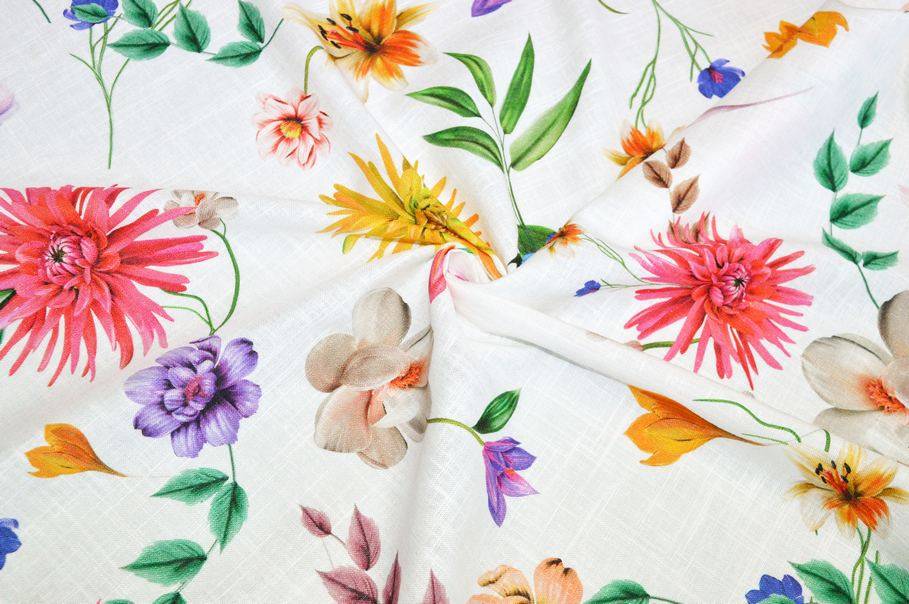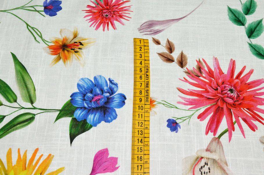 TESSUTO PURO LINO FANTASIA FLOREALE MULTICOLOR