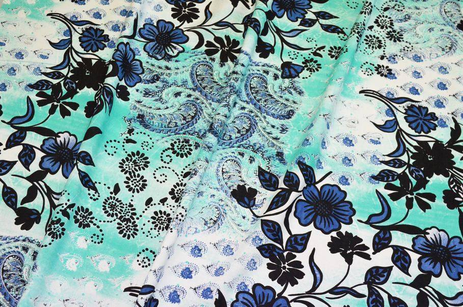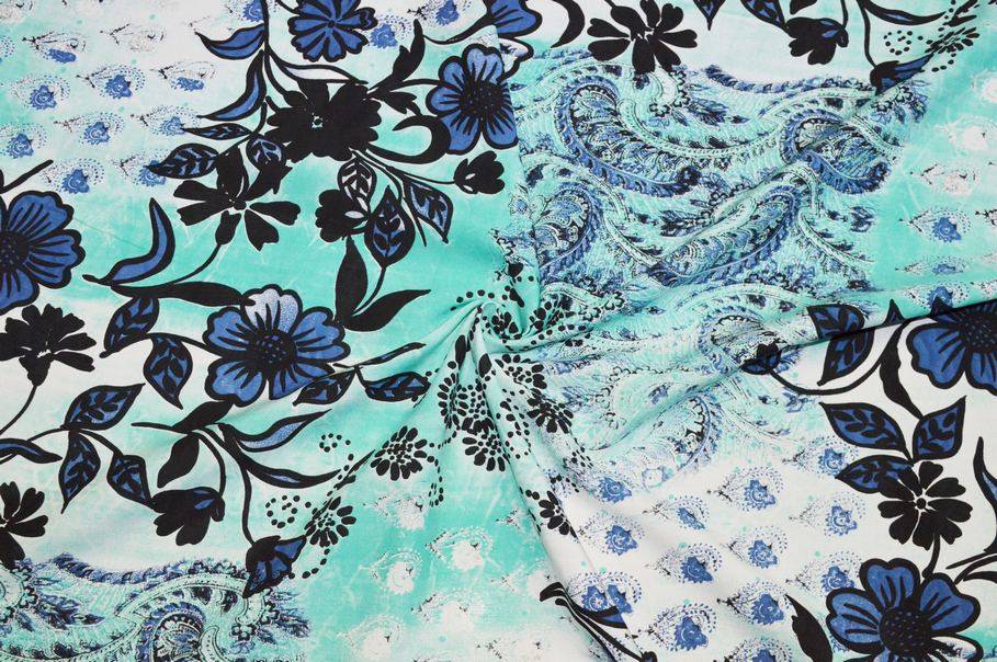 Tessuto popeline di puro cotone caratterizzato da una particolarissima fantasia che nasce dall'unione di più disegni dove l'eleganza del floreale viene accostata alla giocosità di altre figure stilizzate. Il fondo non presenta una sola tonalità, bensì prende vita attraverso bellissime sfumature che vanno dal bianco al verde acqua.