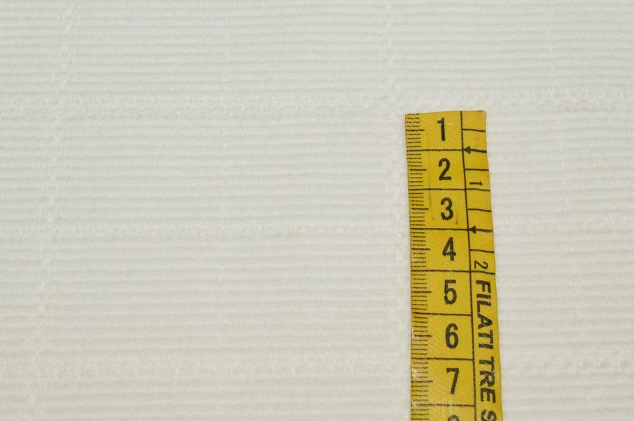Tessuto di cotone leggermente elasticizzato dalla struttura idonea per confezionare giacchette. La principale caratteristica di questa stoffa che la distingue dalle altre è la particolare trama composta da piccole costine di 2 mm in rilievo.( aspetto simile al velluto a coste) Ci sono inoltre scacchi ricamati di 2,7x3,5 cm che realizzano una bellissima scacchiera in tono su tutto il fondo.