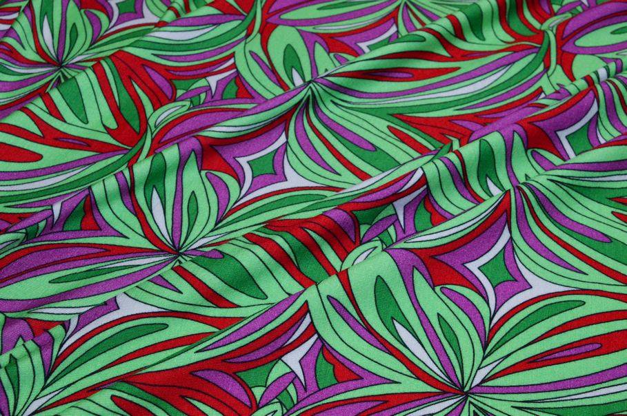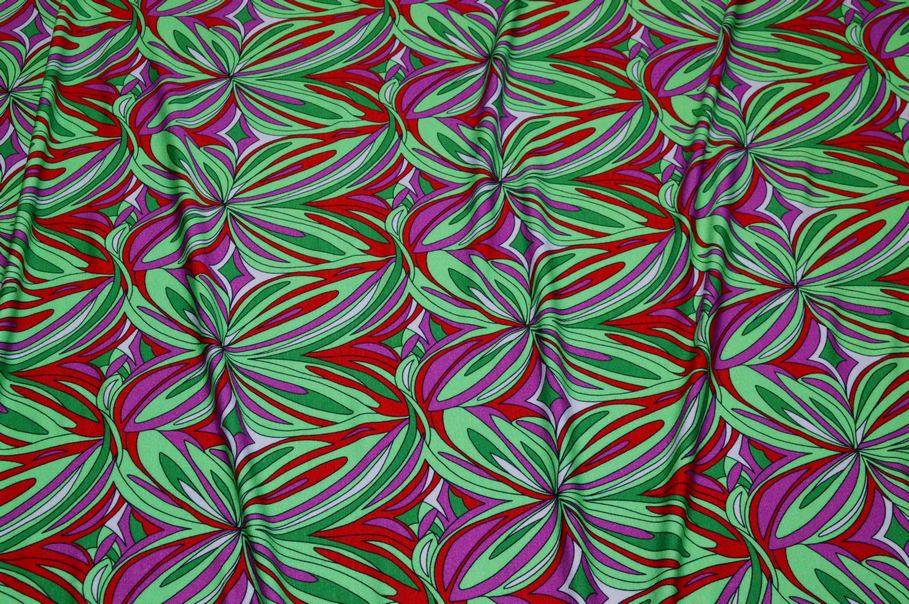 TESSUTO MAGLINA VISCOSA FANTASIA STILIZZATA FUCSIA VERDE