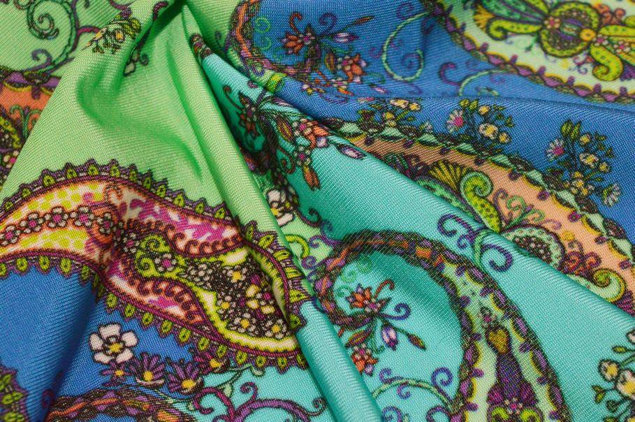 Vendita online tessuti abbigliamento viscosa tessuto maglina viscosa disegno cashmere verde blu - Tessuti & Stoffe