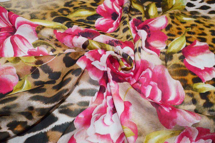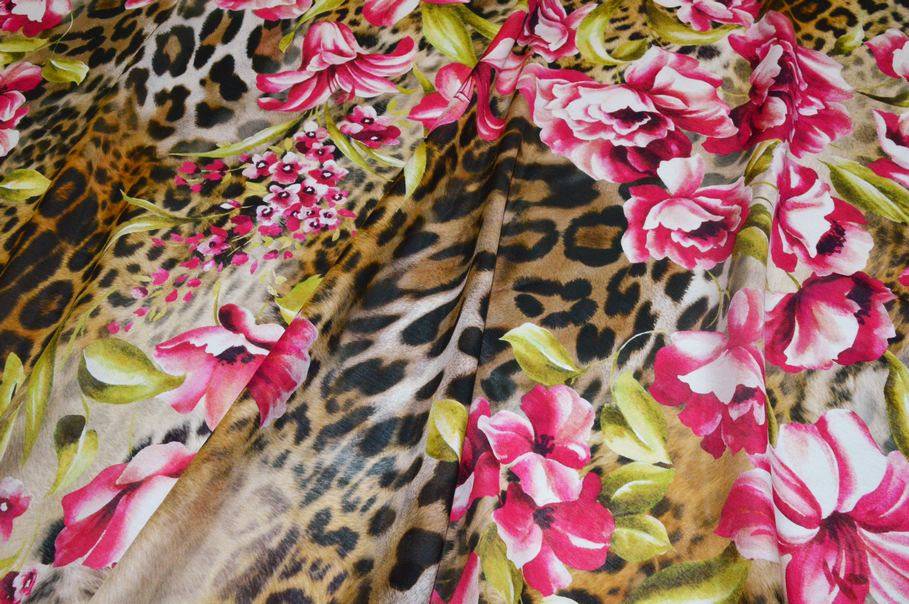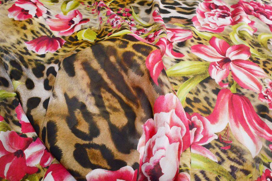 Il pannello misura 140x135 cm e vanta di una bellissima fantasia piazzata che riesce ad unire perfettamente l'eleganza delle stoffe floreali all'accattivante ed iconico motivo animalier per un design rappresentativo dell'alta moda. Indicato per confezionare top e camicette, abitini corti e lunghi, eleganti foulard e stole coprispalle.