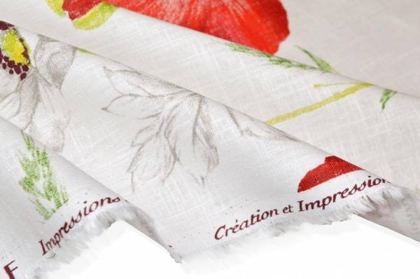 In questo caso il fondo bianco lascia a vista la bellissima trama che caratterizza le stoffe di lino e fa spiccare la raffinatissima fantasia floreale. Il disegno è un'esplosione di colori intensi ed acattivanti, ottimi per rinnovare l'ambiente e dare frescheza alla stanza.
