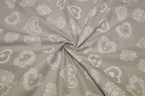 TESSUTO PURO COTONE FANTASIA CUORE TIROLESE AVORIO