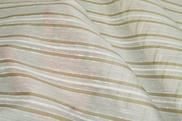 Ottimo tessuto per tendaggi riconoscibile per la sua bellezza sia estetica che tessile. La stoffa viene realizzata con filati di misto seta i quali ne vanno a definire la struttura leggermente sostenuta con effetto shantung. Proprio di quest'ultimo ne va ad imitare le fiammature irregolari tipiche delle stoffe shantung. Presenta inoltre un aspetto luminoso e semicoprente.